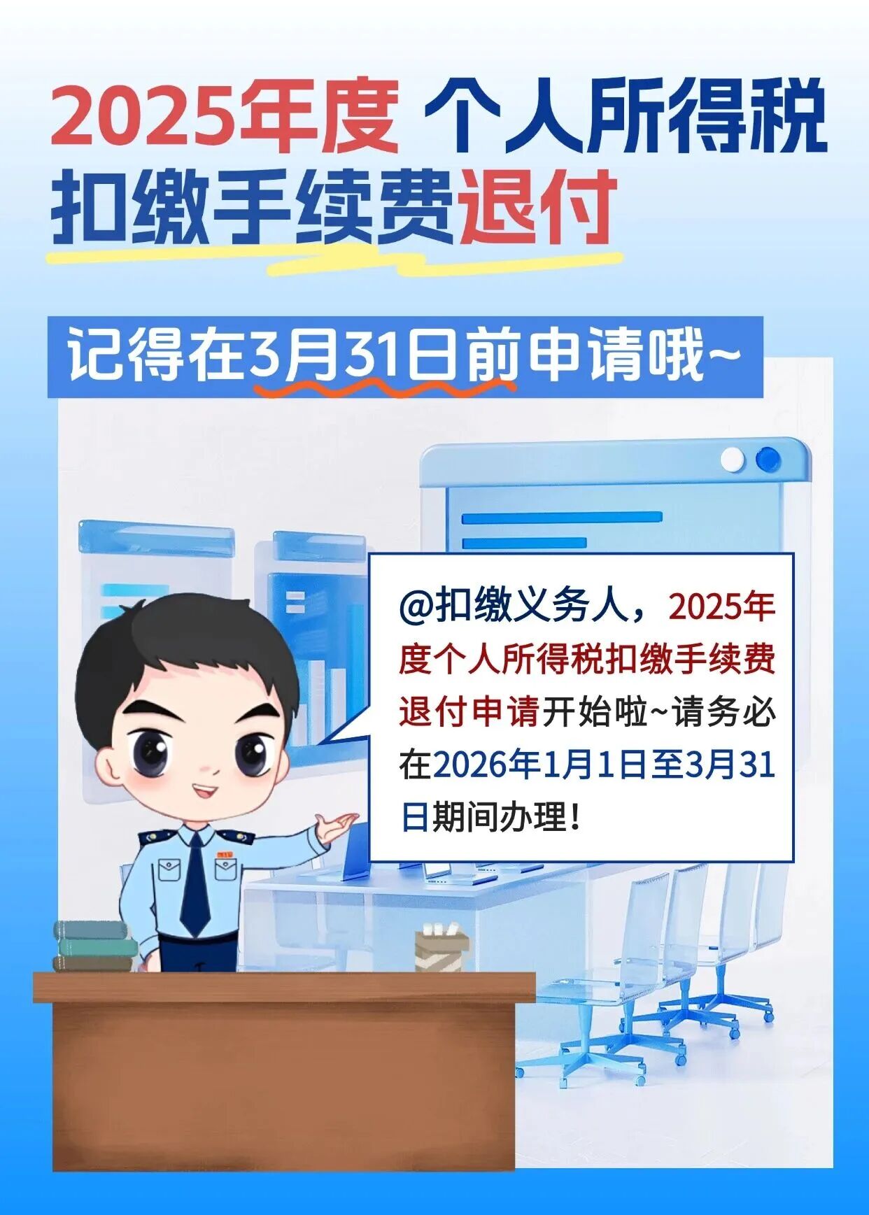 @扣繳義務人,2025年度個人所得稅扣繳手續費退付申請開始啦,請在2026年3月31日前辦理。怎麼退付?一起來看看操作指引。