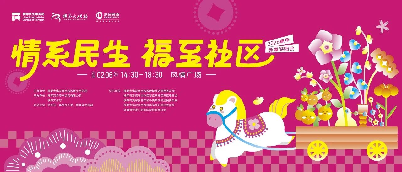 本次活動由橫琴粵澳深度合作區民生事務局主辦,橫琴深合資產運營有限公司、橫琴文化站承辦,橫琴粵澳深度合作區新家園社區、橫琴粵澳深度合作區小橫琴社區、橫琴粵澳深度合作區荷塘社區、橫琴粵澳深度合作區蓮花社區、珠海橫琴澳門新街坊發展有限公司協辦,活動首站將於2月6日在橫琴風情廣場歡樂啓動。