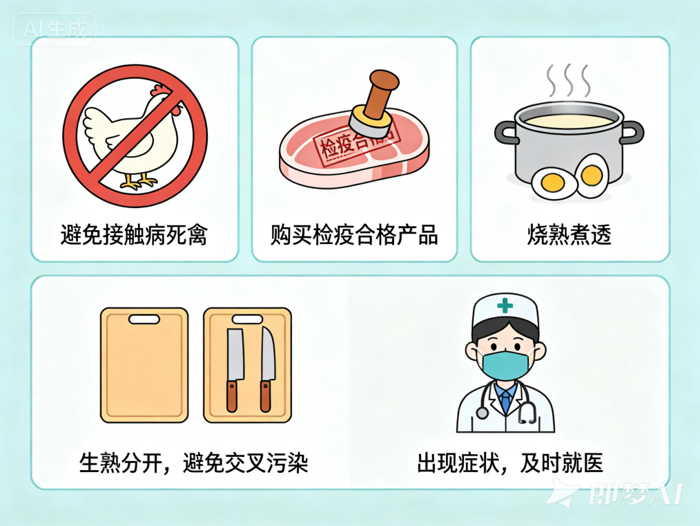 禽肉和蛋類要徹底煮熟,做到生熟分開,處理生禽的用具不能用於處理熟食。若接觸禽類後出現不適症狀,應及時就醫。