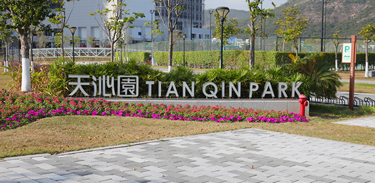 天沁園位於橫琴文化藝術中心南側,園內設有羽毛球場、籃球場、足球場及健身步道等運動設施,滿足琴澳居民多樣化的運動需求。