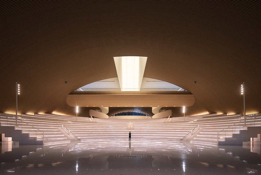 橫琴文化藝術中心融合“山水橫琴,灣區客廳”的設計理念,以拱形空間串聯多元功能,成爲集演藝展覽、藝術創作於一體的橫琴文化新地標。