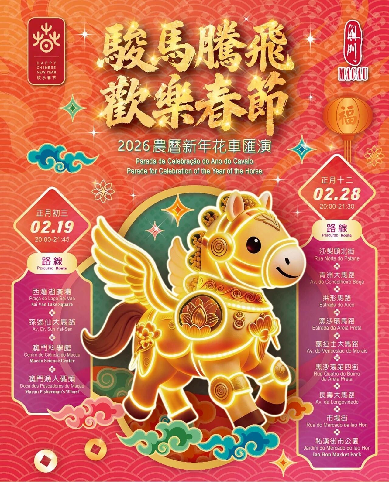 有關完整節目表,請查閱官網:https://www.macaotourism.gov.mo/zh-hans/article/cny/parade-2026