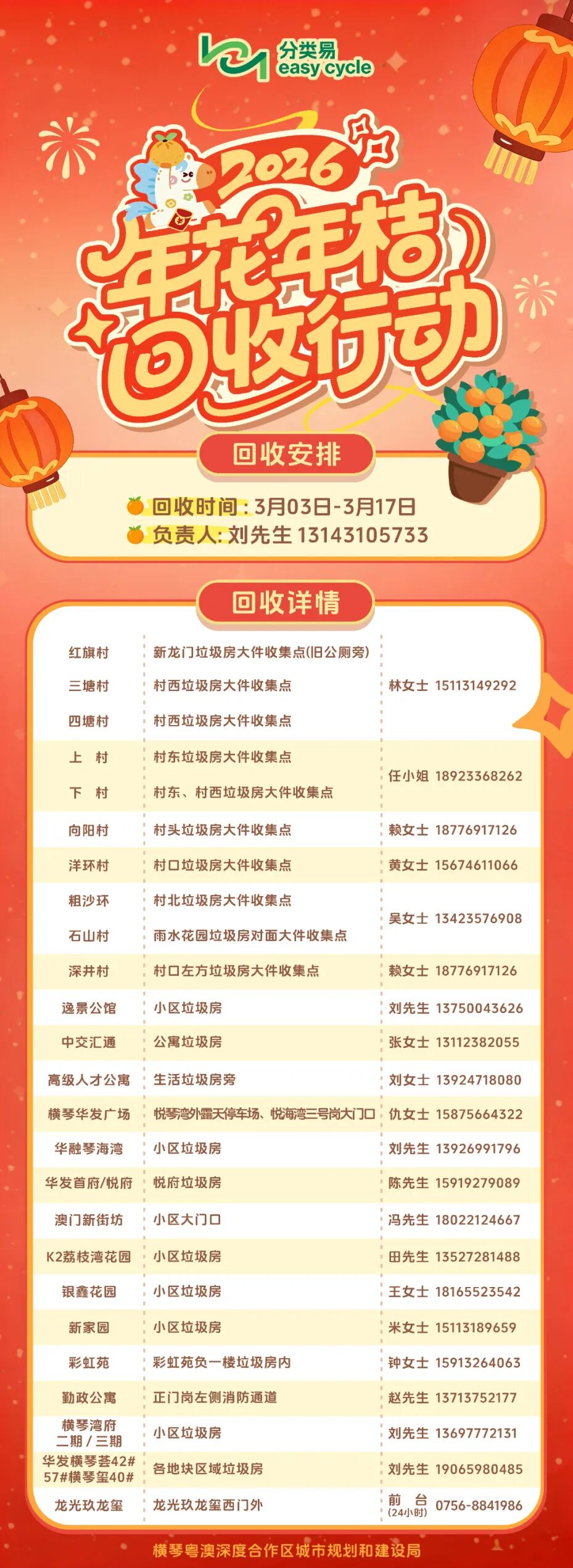 馬年新歲,願合作區的團圓飯桌添清新綠意,讓垃圾分類成家風新註腳,行動化溫暖力量,讓環保在煙火氣中生生不息。後續合作區將開展相關的堆肥、變廢爲寶活動,與您共赴一場年花年桔新生之旅,期待您的積極參與。