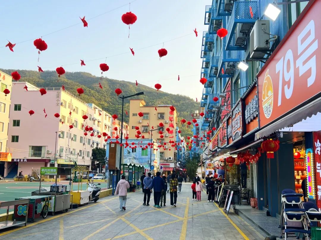 2月2日的荷塘社區,101家商戶接過統一規格的紅燈籠,深井村瞬間變身新春打卡地。民宿老闆李姐踩着梯子掛燈籠,轉頭跟身邊的工作人員笑:“以前自己掛的燈籠大小不一,現在統一一掛,客人進門就說有年味兒,生意都火了不少!”