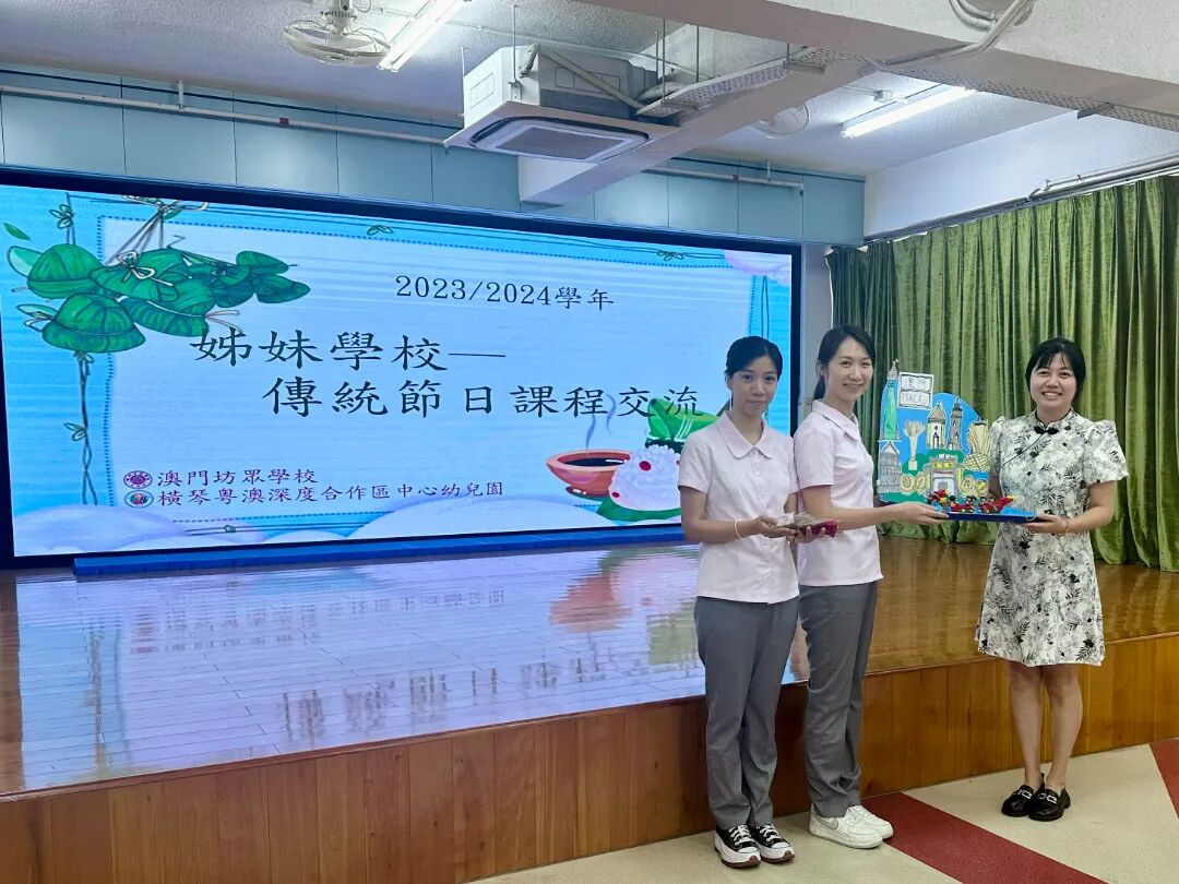 橫琴中心幼兒園與澳門姊妹園——澳門坊衆學校幼稚園,歷時兩年開展傳統節日課程共建課題,創新提出四種課程探究模式(CC-活動體驗、CC-主題教學、CC-項目式學習(PBL)及CC-STEAM探究),將傳統節日與現代教育理念結合。2025年端午節期間,兩地幼兒還線上聯動,同步開展包糉子、製作中草藥香囊等活動,實現文化傳承與科學探究的有機融合,既增強幼兒文化自信,也促進教師專業成長。