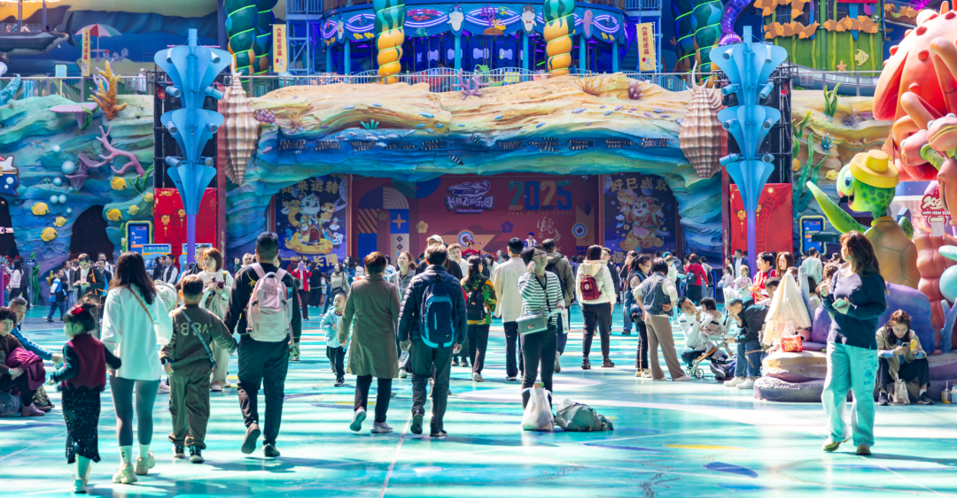 在長隆國際海洋度假區,親子家庭成爲主力軍。冰山過山車、雨林降落塔等熱門項目平均排隊30至45分鐘,遊客熱情高漲。