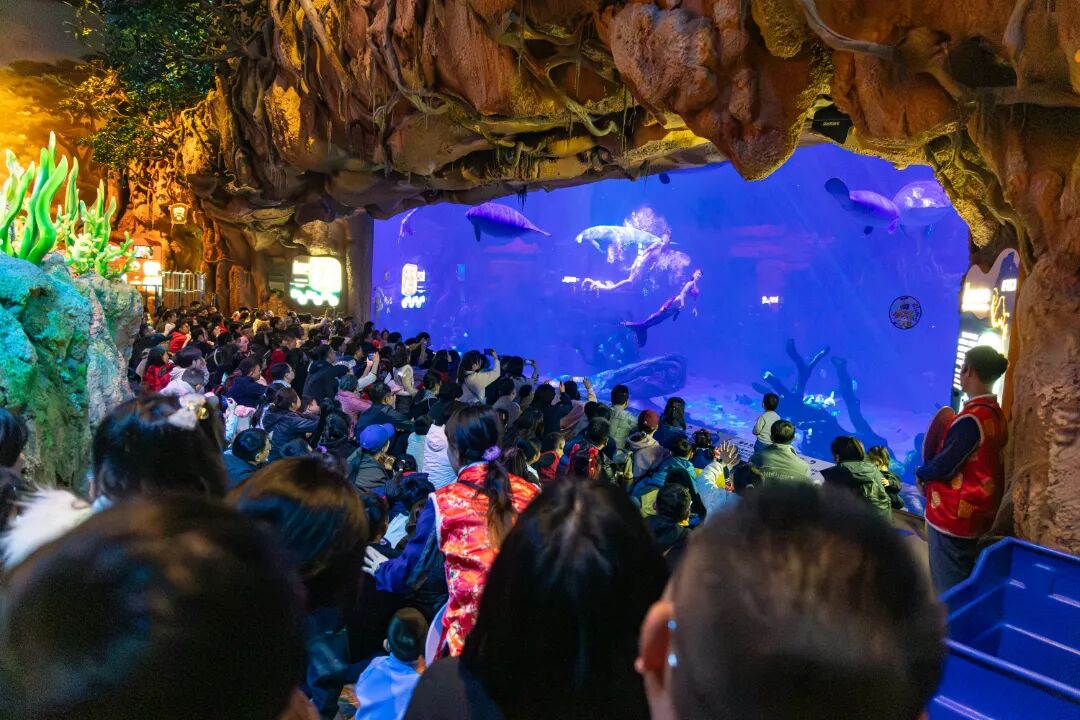 在長隆的飛船樂園內,水下變臉、水下財神、美人魚賀歲等創新表演同樣吸睛。“傳統年俗和現代表演技術結合,孩子看得津津有味,這裏的年味更濃了!”遊客林女士點贊。