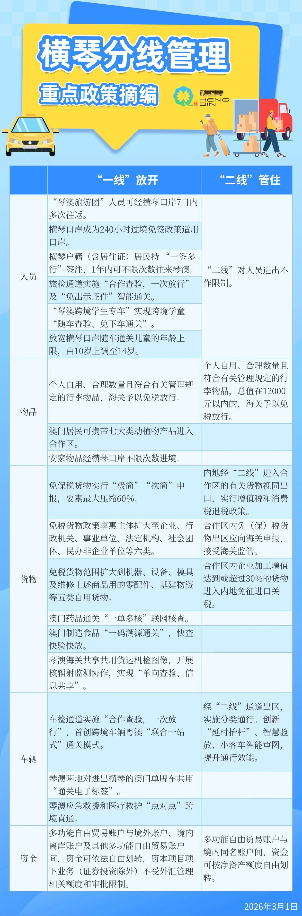 貨行其暢,客享其旅。分線管理政策全國首創爲合作區和澳門量身定製通關便民服務措施,讓琴澳往來更加緊密。