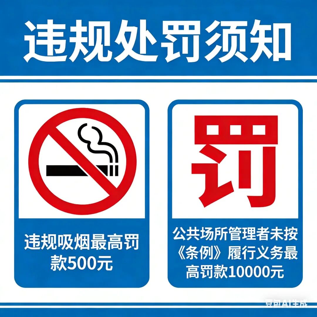 公共場所經營者、管理者未按《條例》履行相關義務的,由控煙監管部門按照職責範圍責令改正;拒不改正的,處一千元以上五千元以下罰款;情節嚴重的,處五千元以上一萬元以下罰款。