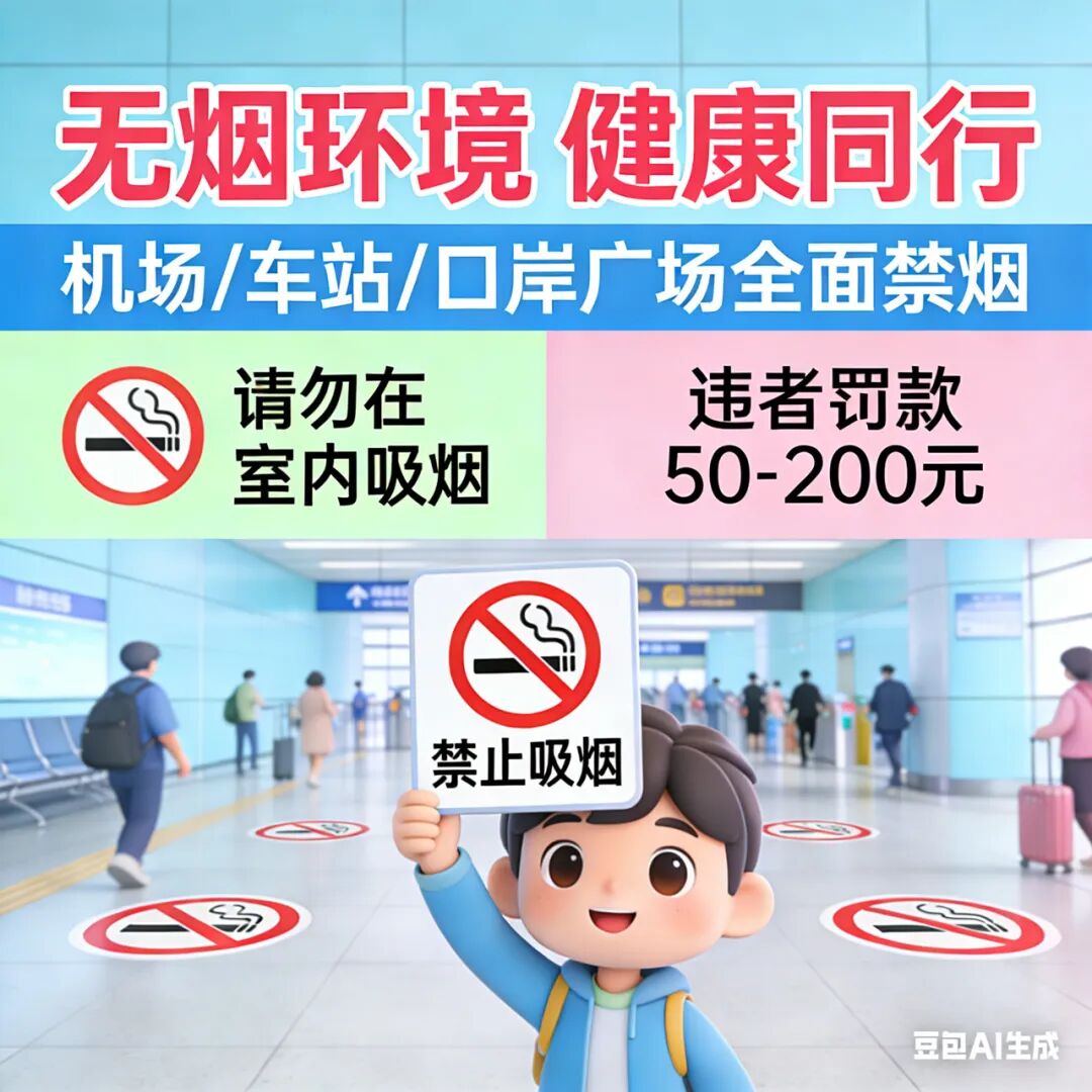 · 機場、車站、客運碼頭、口岸廣場、城際軌道交通站廣場等人員密集場所吸煙點(區)以外區域