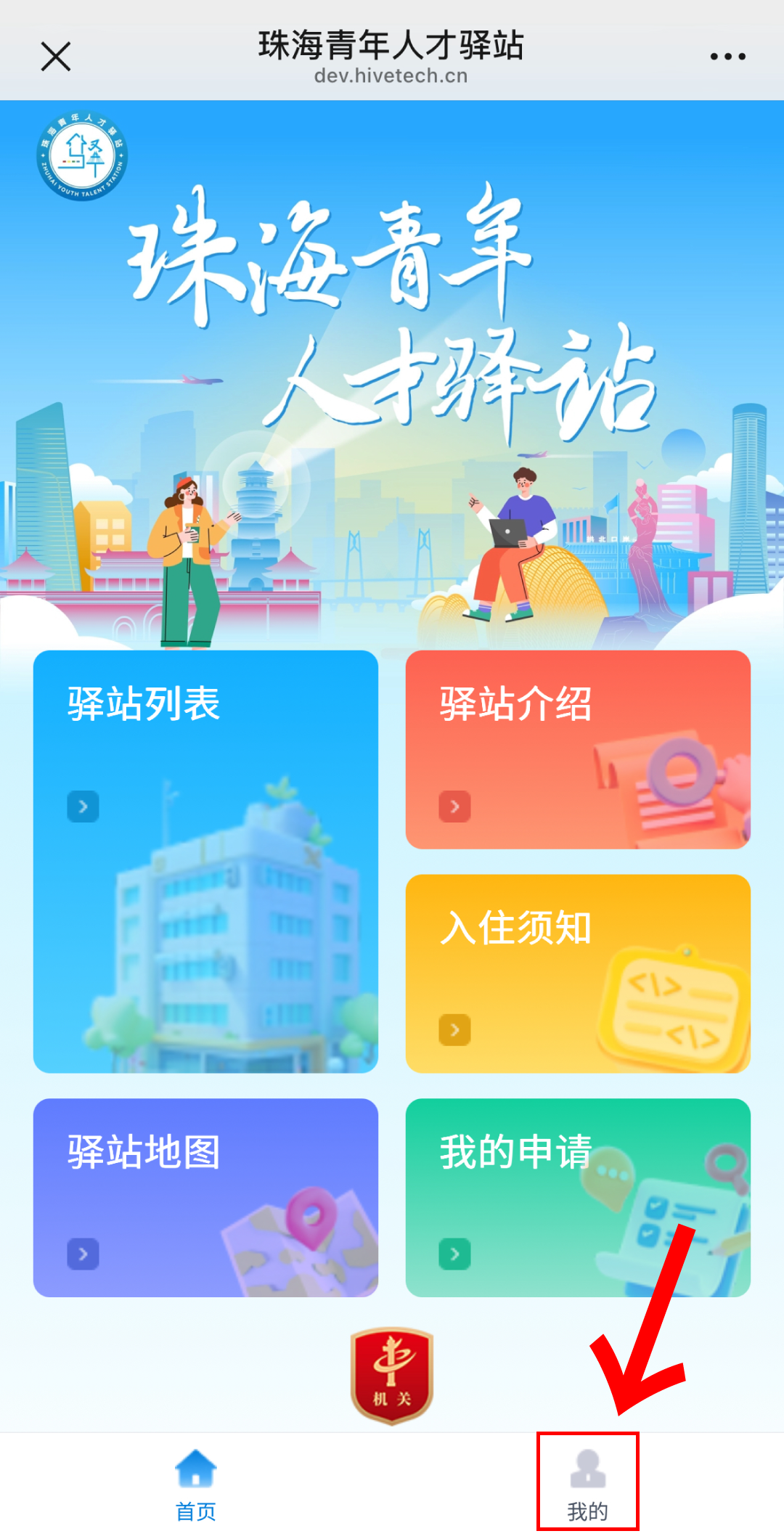 進入“珠海青年”微信公衆號;下方菜單欄依次點擊“青年服務”-“青年人才驛站”-“我的”,輸入賬號和密碼進行登錄。