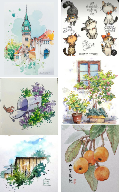 “鋼筆畫線,水彩鋪色” ,鋼筆淡彩畫在五分鐘內就能把那個瞬間的 “光”與“色” 鎖在紙上,讓你在快節奏的現代生活中,依然能優雅地停下來,用線條去思考,用色彩去感受。速寫記錄身邊的美好。