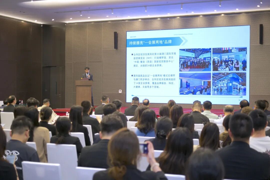 澳門招商投資促進局代表作主題分享,結合澳門優勢闡述“澳門引流、橫琴承載”思路,提出推動兩地檔期聯動、資源互補,共建國際會展旅遊目的地。
