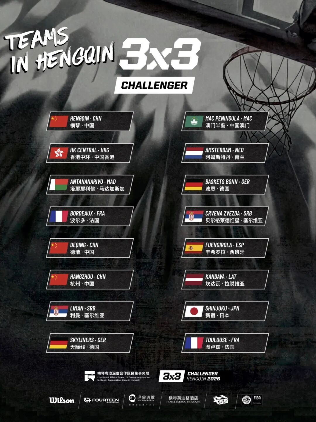 4月11日至12日,2026賽季國際籃聯三人籃球(FIBA 3x3)挑戰賽將強勢登陸橫琴文化藝術中心,熱血對決,引爆全城!