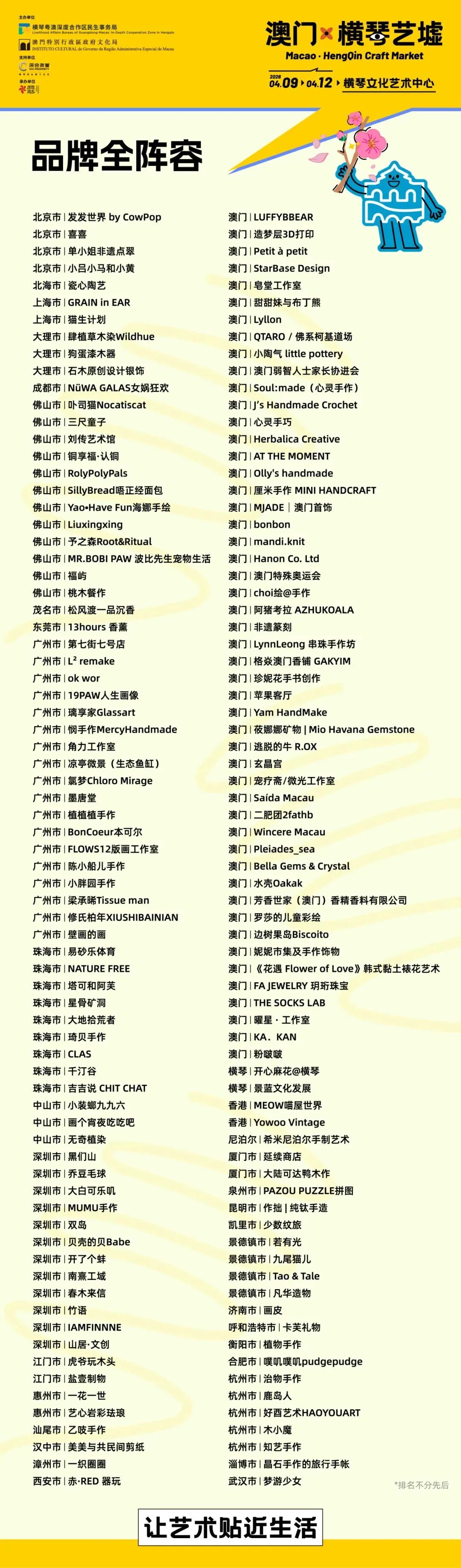 此次“澳門·橫琴藝墟”共有來自北京/ 上海/ 廣州/ 深圳/ 澳門/ 尼泊爾等34個城市及地區,150+文創手作品牌陣容集結出攤。