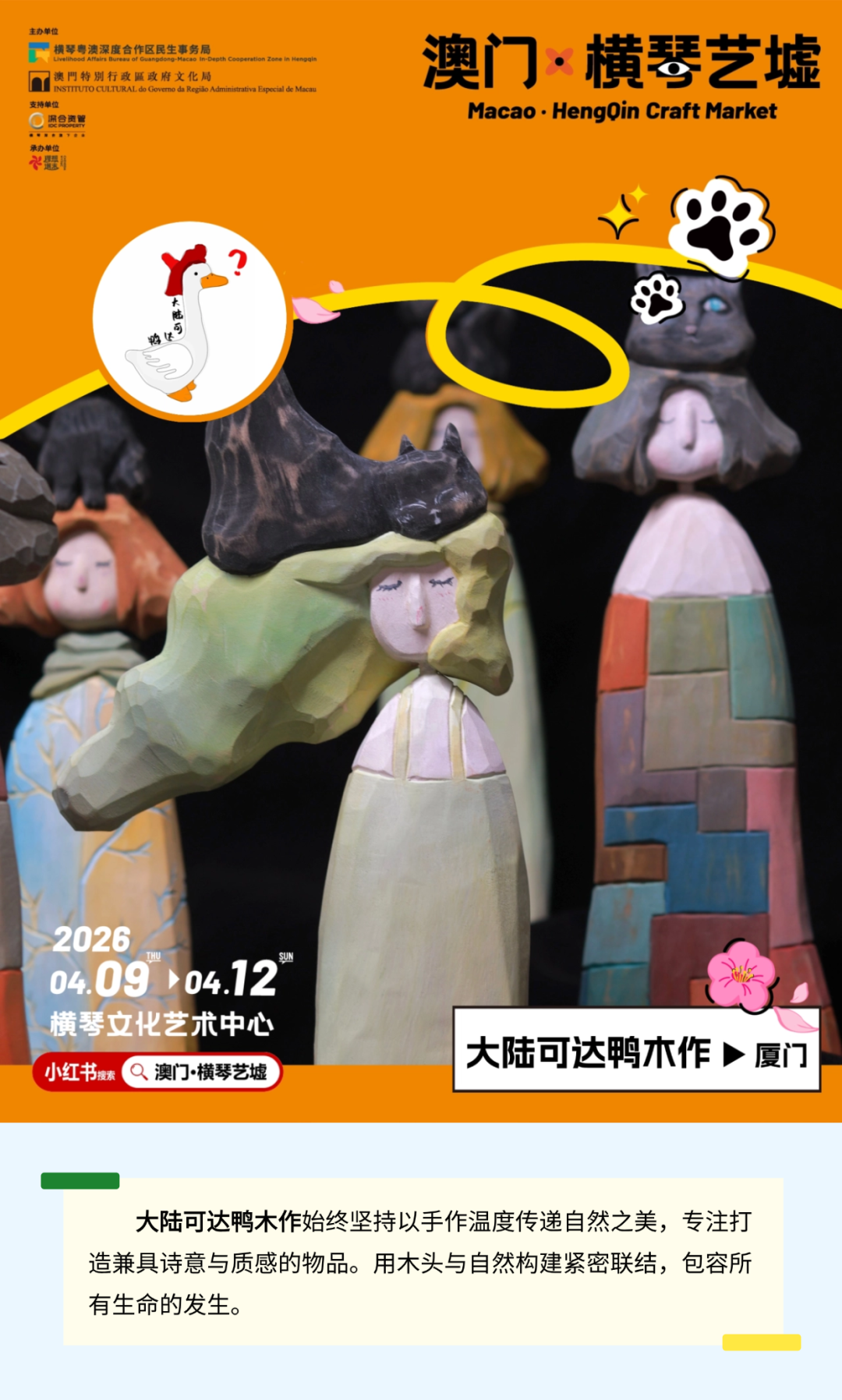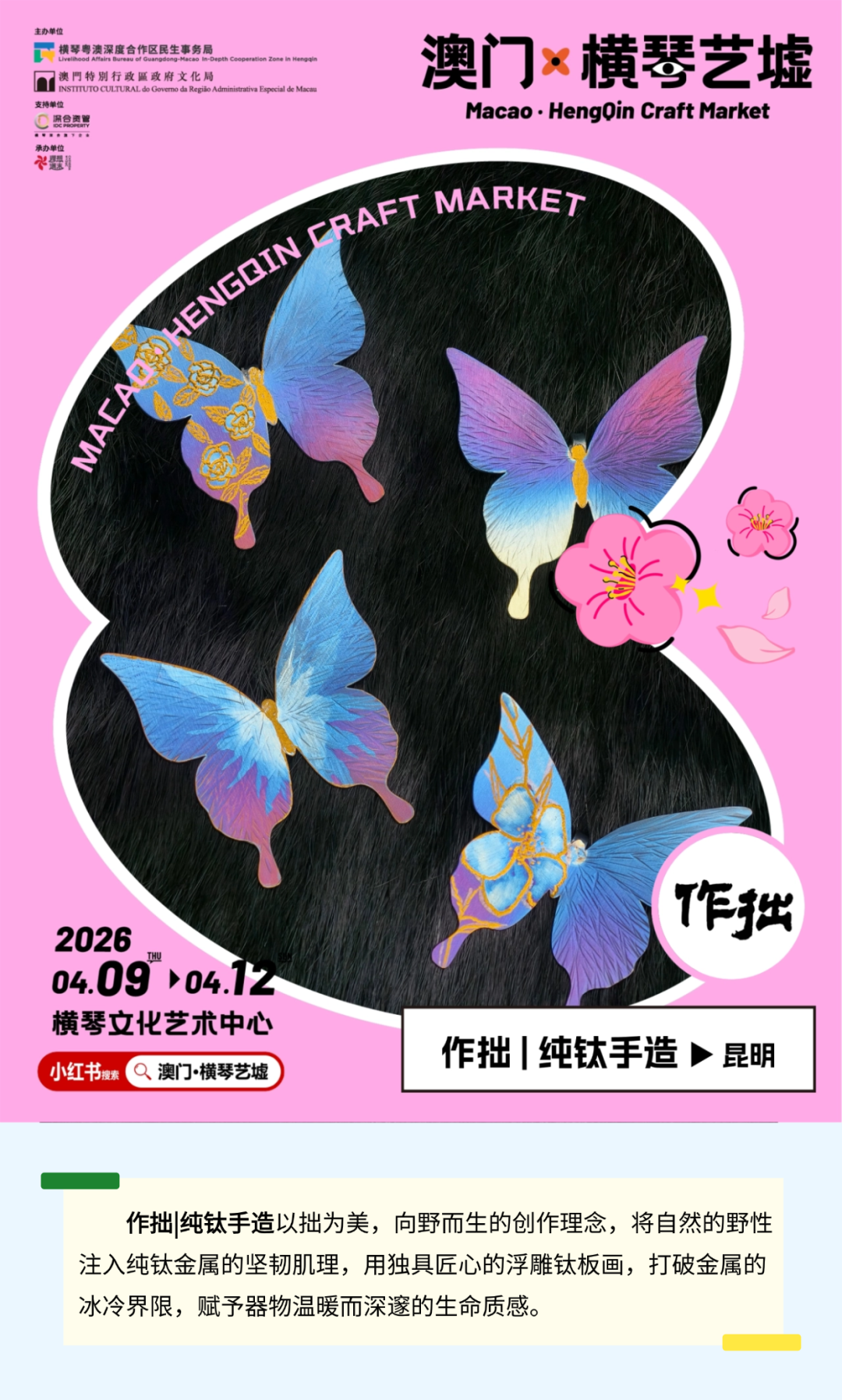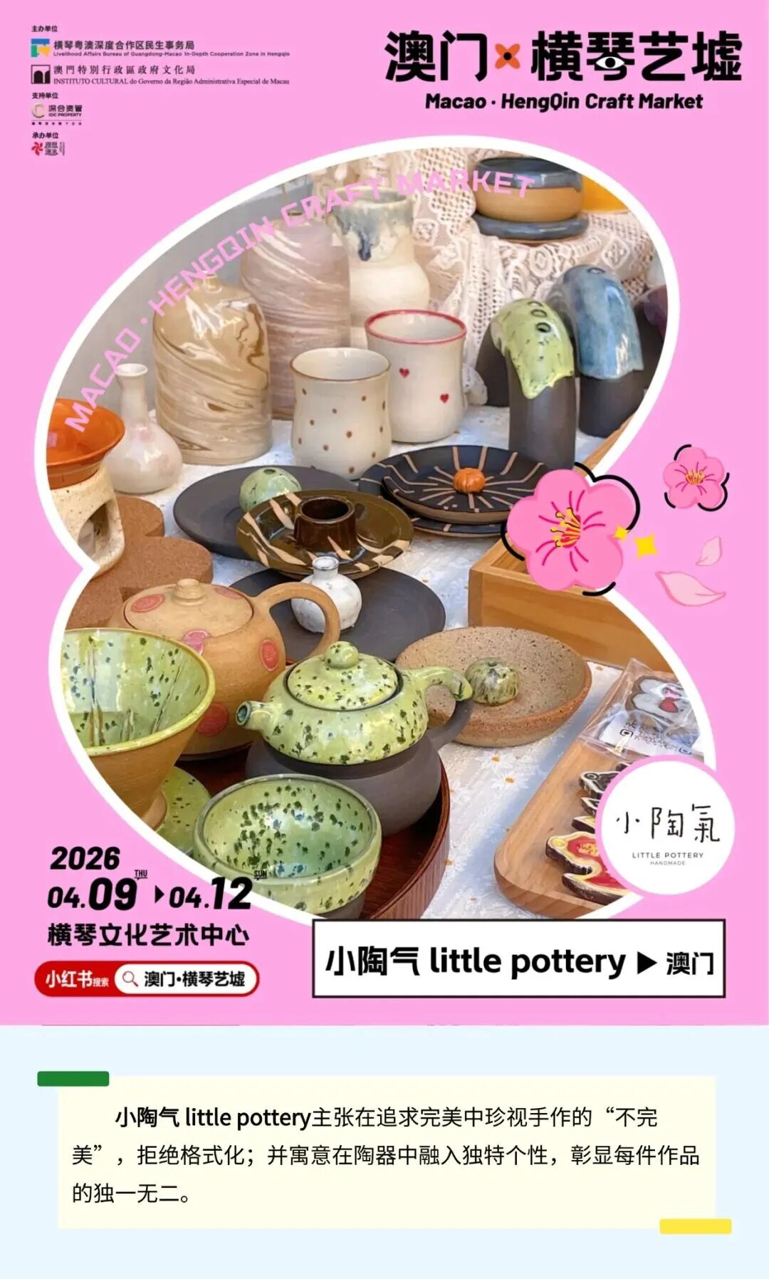 “北有趕集,南有趁墟”,春耕之際,“澳門·橫琴藝墟”以“讓藝術貼近生活”爲約,邀來150位來自全國各地的創造者,於4月9日-4月12日登陸橫琴文化藝術中心,連續4天免費開放。在琴澳“藝文桃花源”裏,邀你暫別焦慮、放下匆忙,借一方手作、一件好物、一場相遇,讓美與日常溫柔相撞。