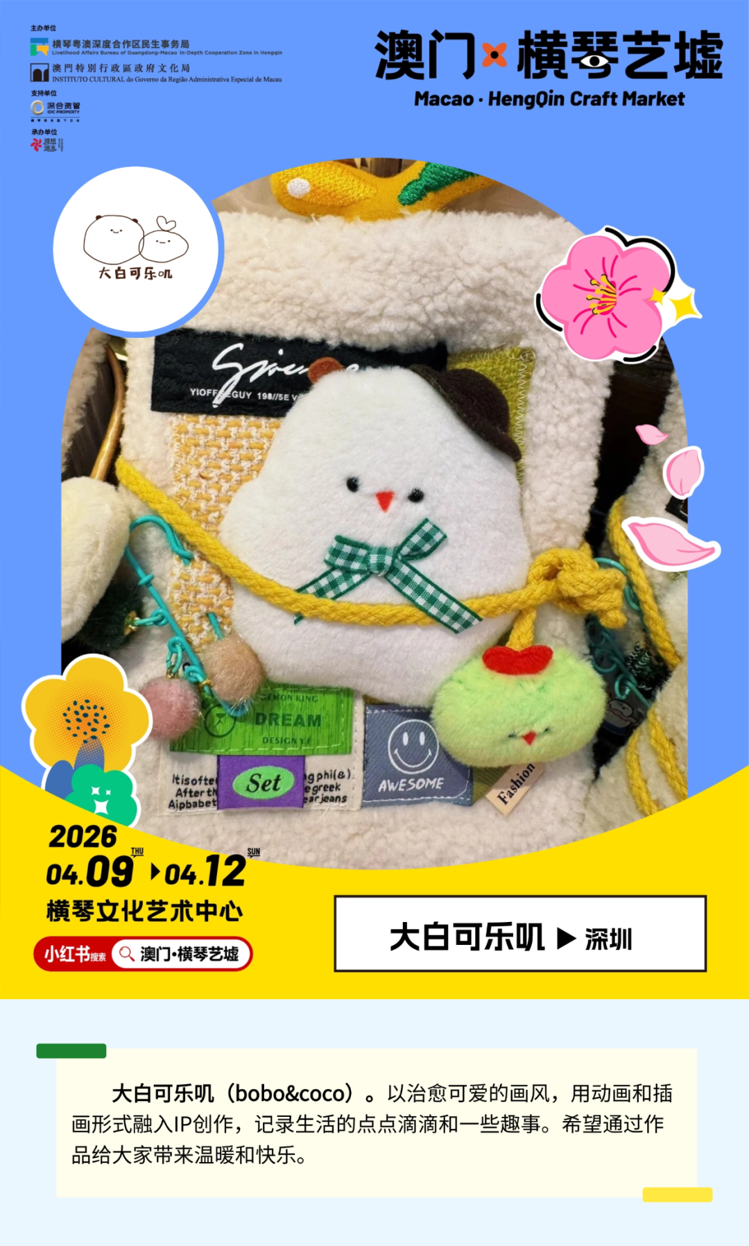 插畫、器物、文創首飾、香氛家居、手作箱包、寵物用品等,不少品牌更是首次出攤橫琴。