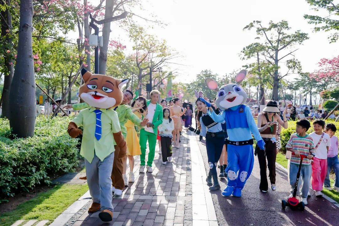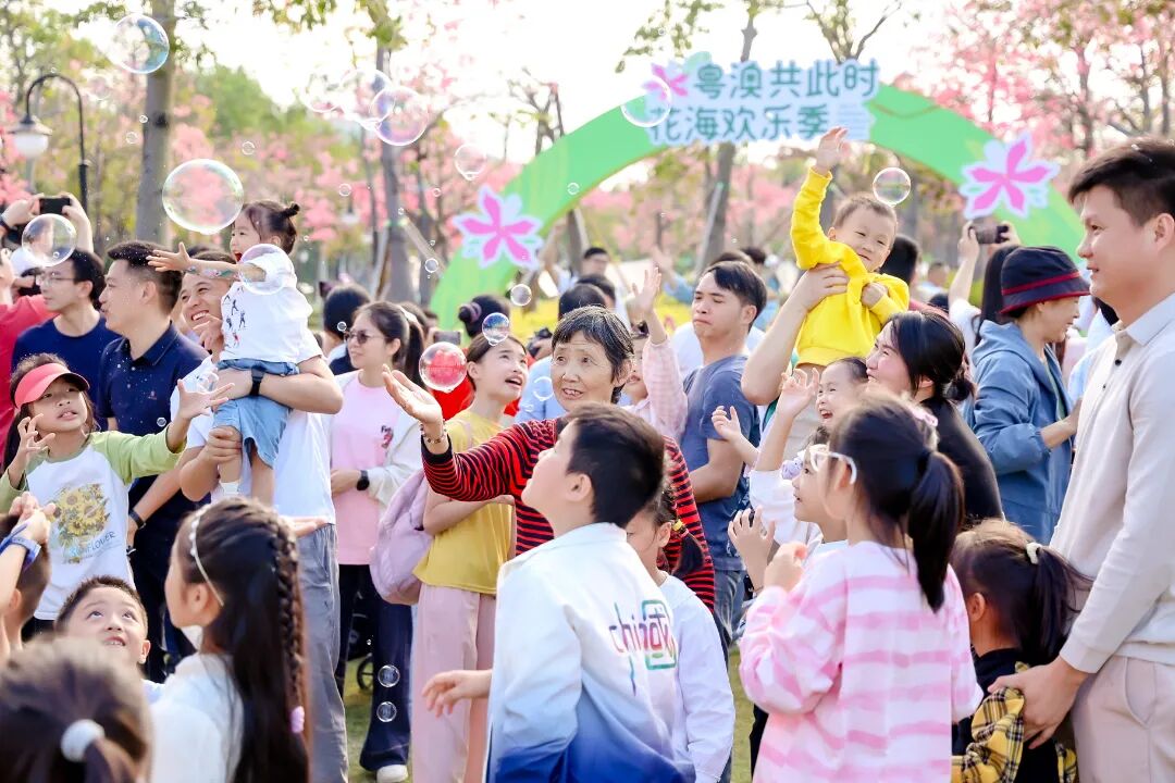 演員與觀衆零距離互動,孩子們在泡泡的世界裏奔跑歡笑,市民遊客紛紛拍照留念,花海長廊變成了一幅充滿笑聲與藝術氛圍的流動畫卷。