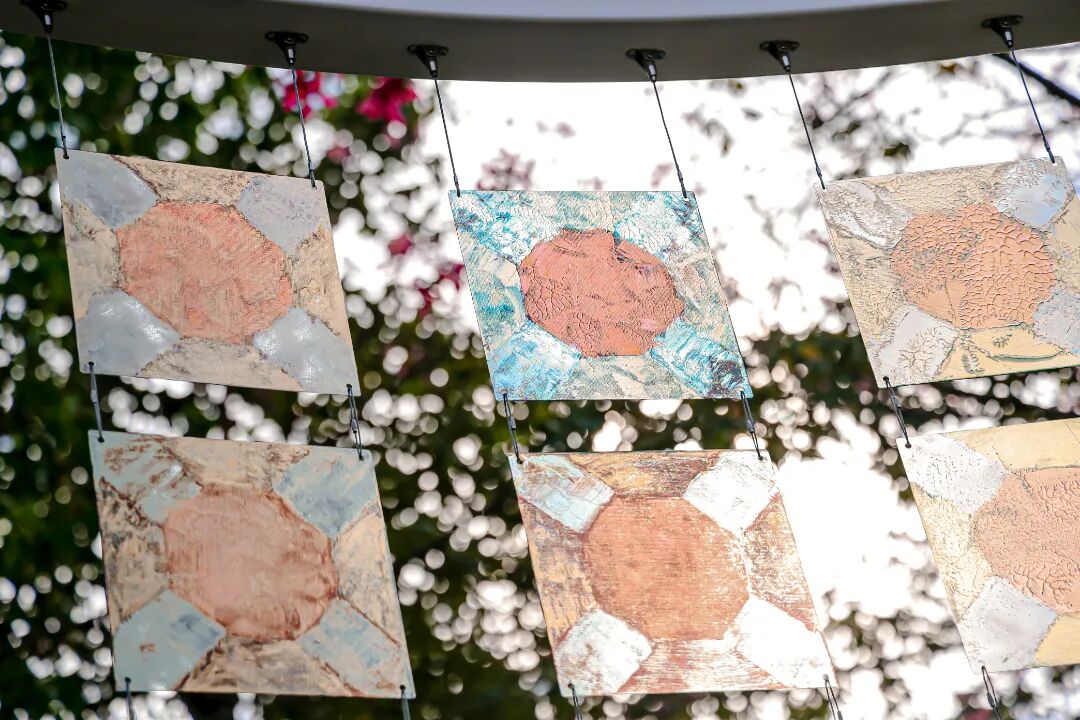 來自澳門的青年藝術家黎小杰、盧紹儀共同打造的藝術裝置在現場亮相,成爲市民遊客爭相打卡的焦點。該作品以自然花卉爲靈感,融合當代藝術裝置與傳統工藝,寓意“以藝爲橋,以樂爲心”。