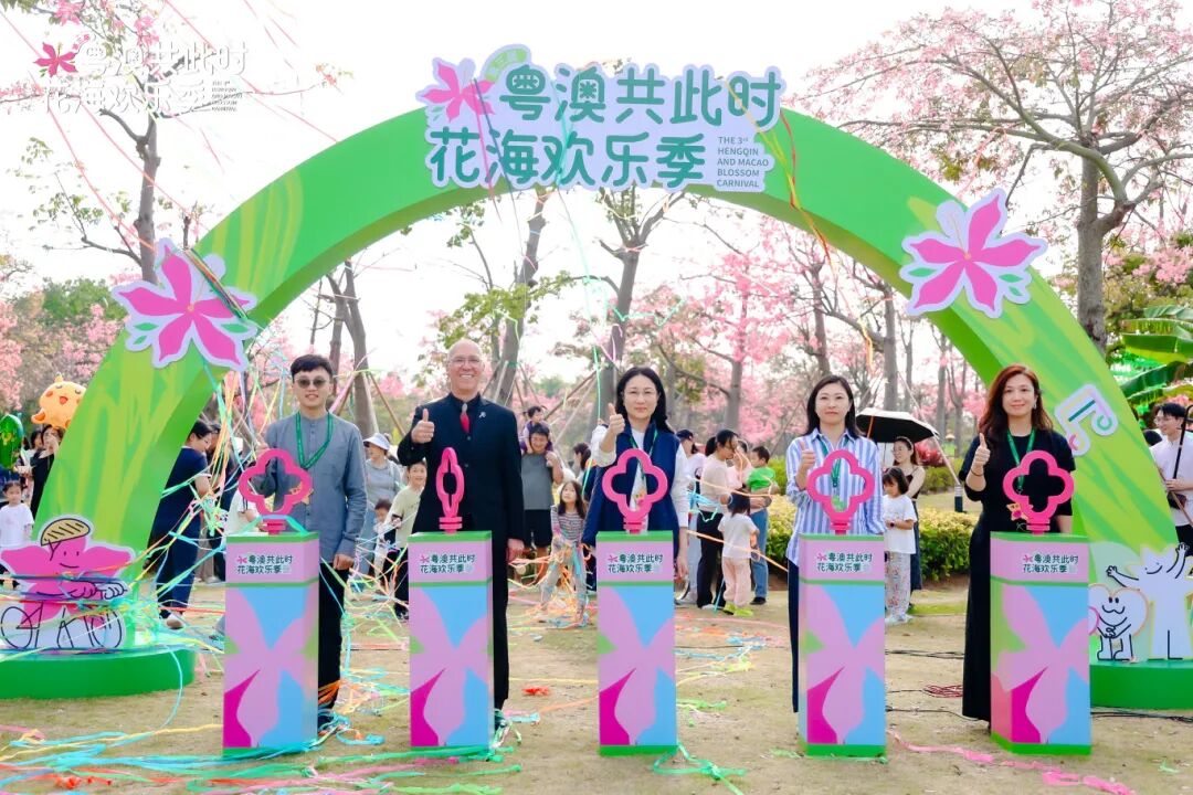 當日下午2時30分,橫琴粵澳深度合作區民生事務局局長馮方丹、副局長蘇凱慈,聯同澳門人樂隊隊長左文軒,澳門青年藝術家黎小杰、盧紹儀共同啓動發條裝置,象徵琴澳文旅合作的齒輪緩緩轉動,同時也標誌着第三屆“粵澳共此時”花海歡樂季正式開幕。