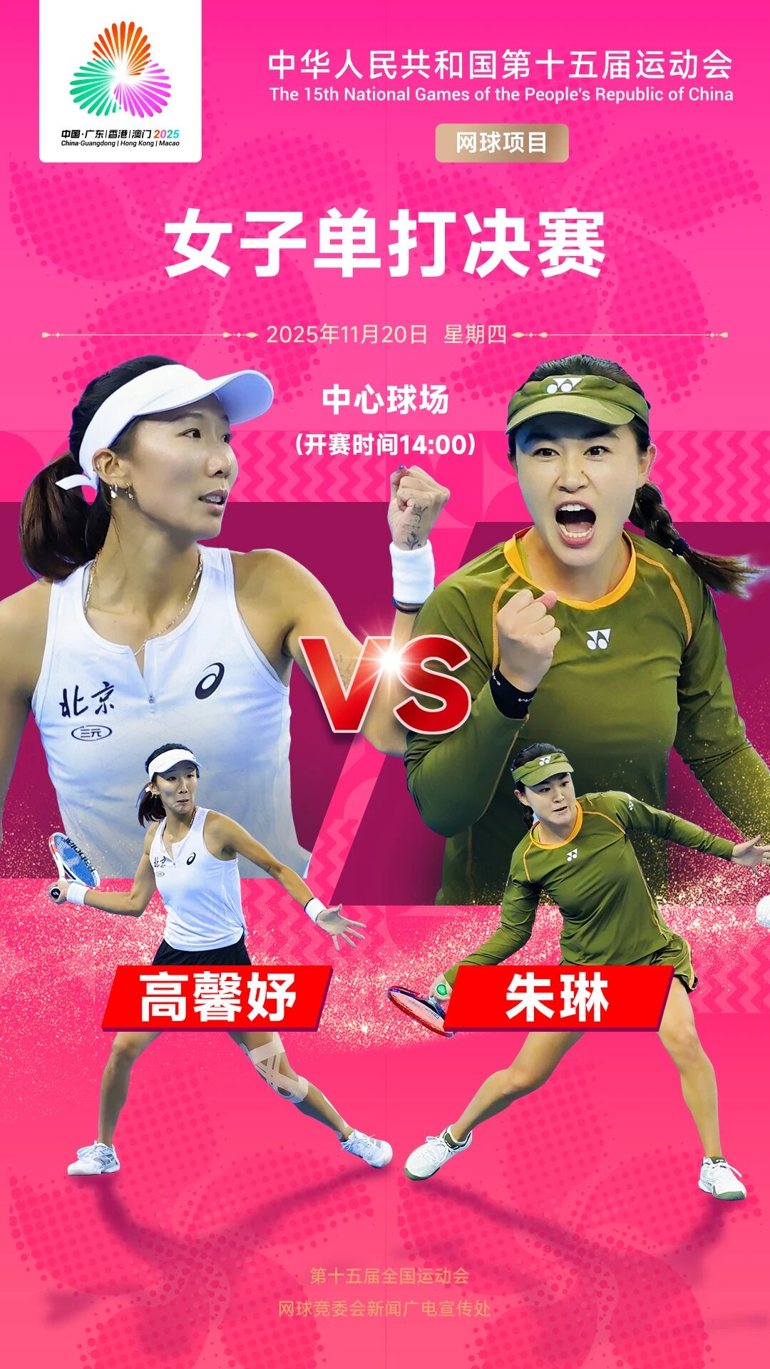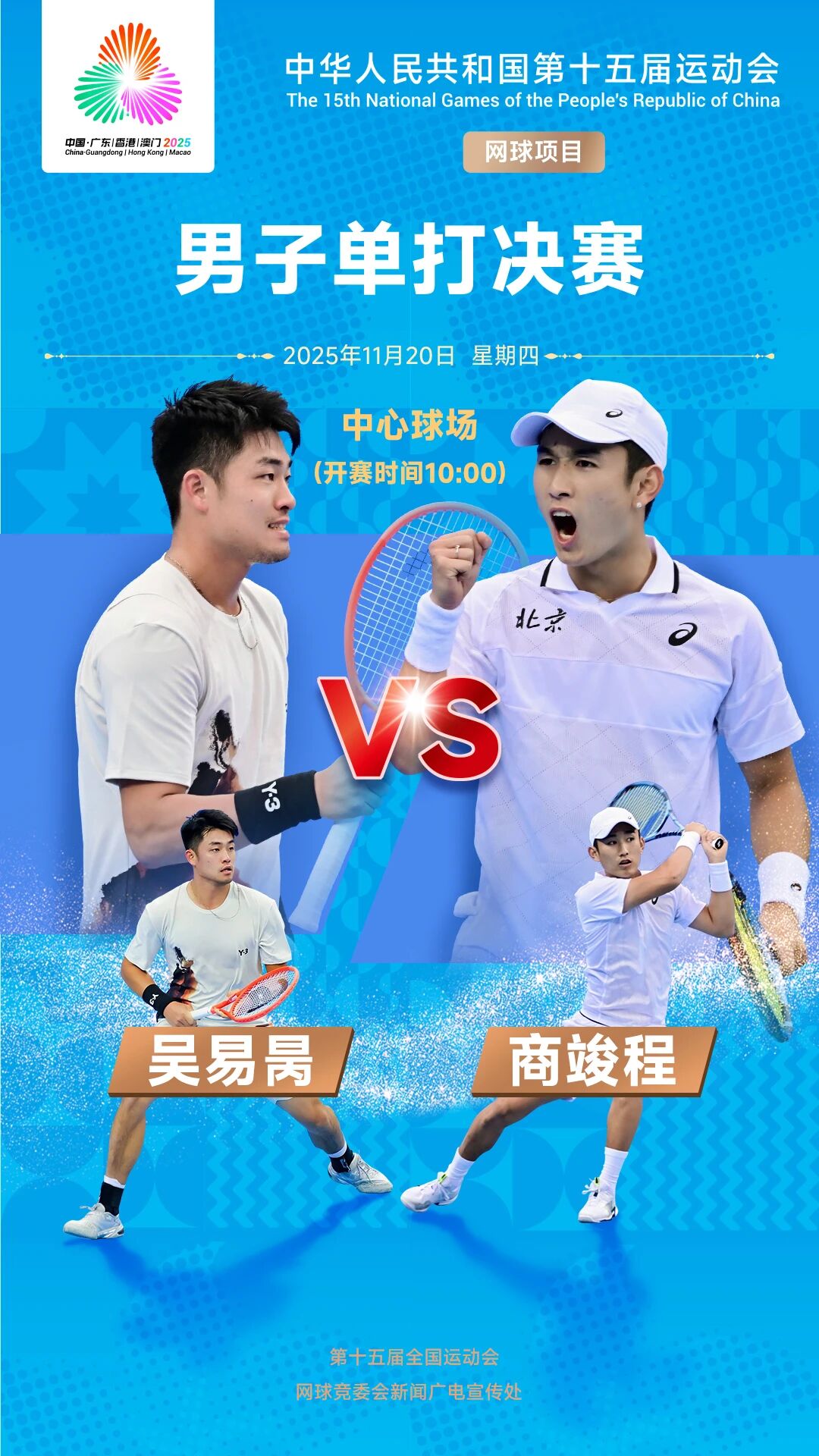 11月20日,十五運會網球項目將迎來收官之日,將誕生男單、女單兩枚金牌。