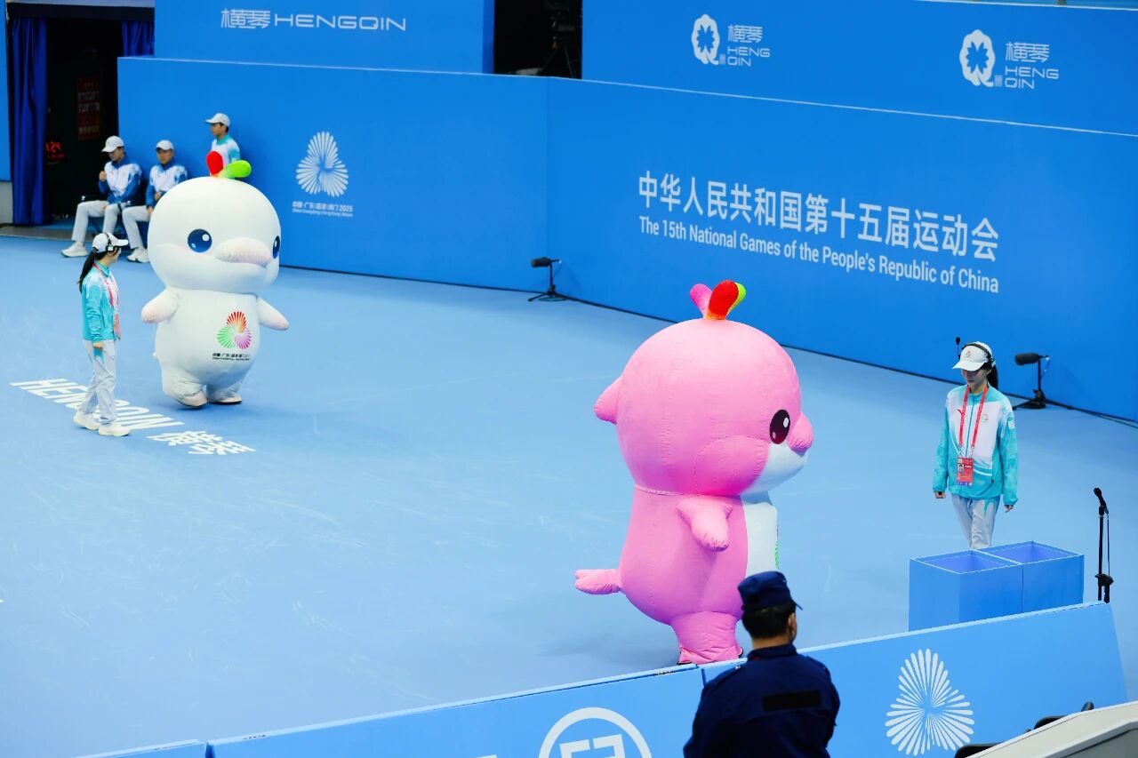 上午比賽正式開打之前,“喜洋洋”“樂融融”再度現身中心場,和現場觀衆、線審、志願者親切互動,橫琴子期小學的萌娃們還帶來了啦啦操隊表演,暫時緩解了大戰之前的緊張氣氛。