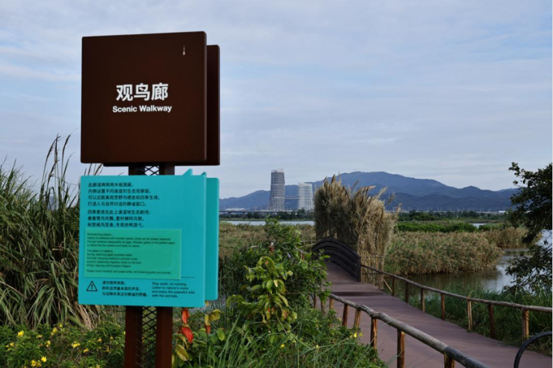 爲守護這份寧靜,生態島南北新增兩處觀鳥板。木製擋板與蘆竹叢巧妙遮蔽,既降低人類活動干擾,又爲攝影愛好者打造“隱蔽出片點”,讓觀鳥成爲一場不打擾的溫柔邂逅。