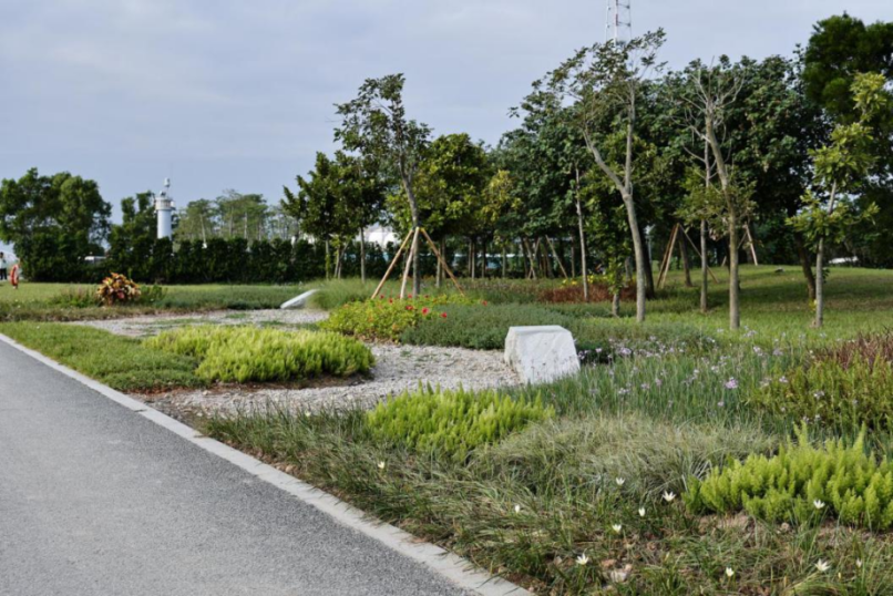 濕地一期二期,超16萬株紅樹紮根灘塗,從潮間帶的桐花、秋茄、滷蕨到岸上的水黃皮、黃槿、苦郎樹等,“水生→溼生→陸生”及草灌喬林生態梯度錯落鋪展,構築起多功能綠色屏障,海岸防護力MAX。