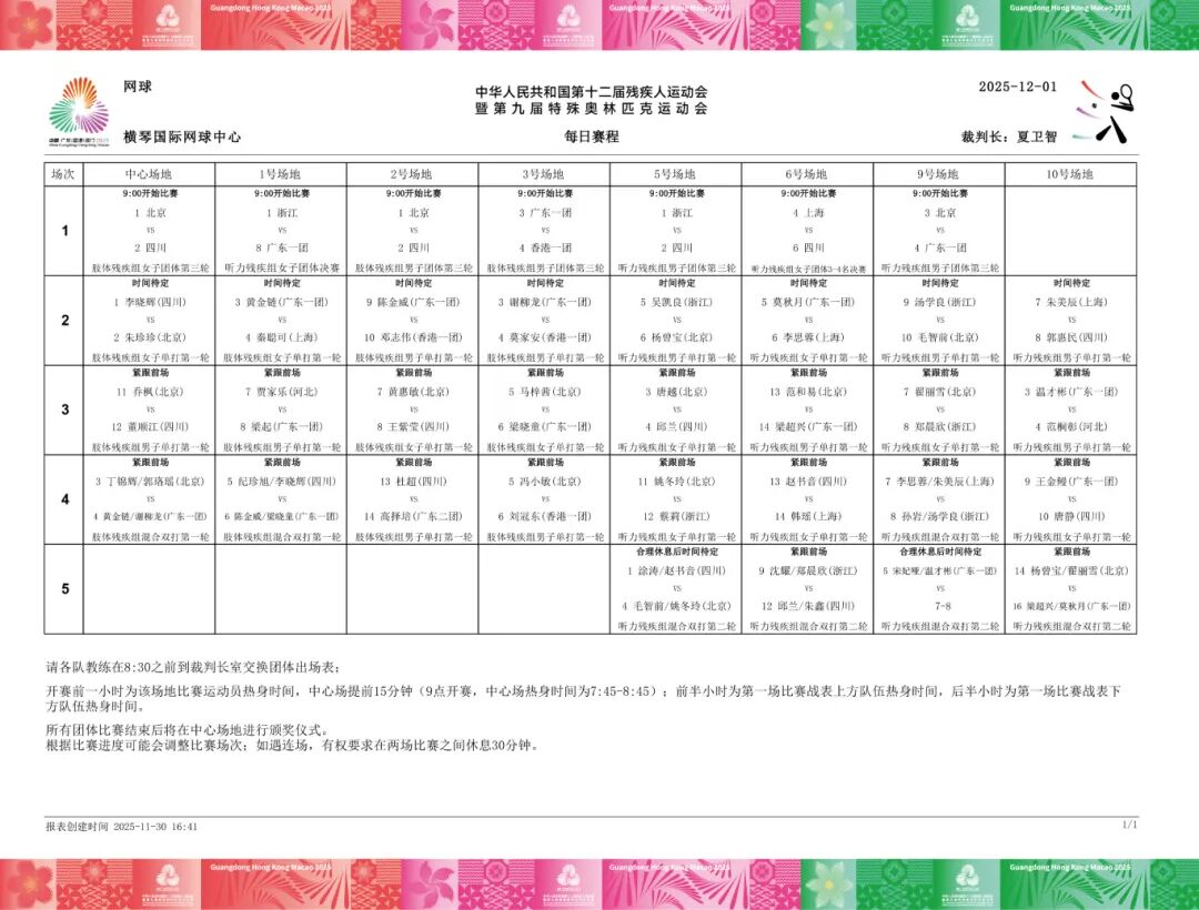 來源: 全國第十二屆殘疾人運動會暨第九屆特殊奧林匹克運動會網球競委會新聞廣電宣傳處 發佈時間: 2025-12-01