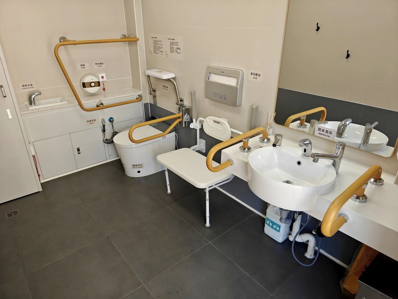 在硬件上,場館基礎設施完成無障礙適配,包括無障礙通道、盲道佈局、無障礙停車位、無障礙洗手間、無障礙電梯等,確保輪椅運動員通行、訓練、競賽全程順暢。還特別增設了臨時無障礙衛生間,同時升級安防系統,兼顧安全保障與使用便利。
