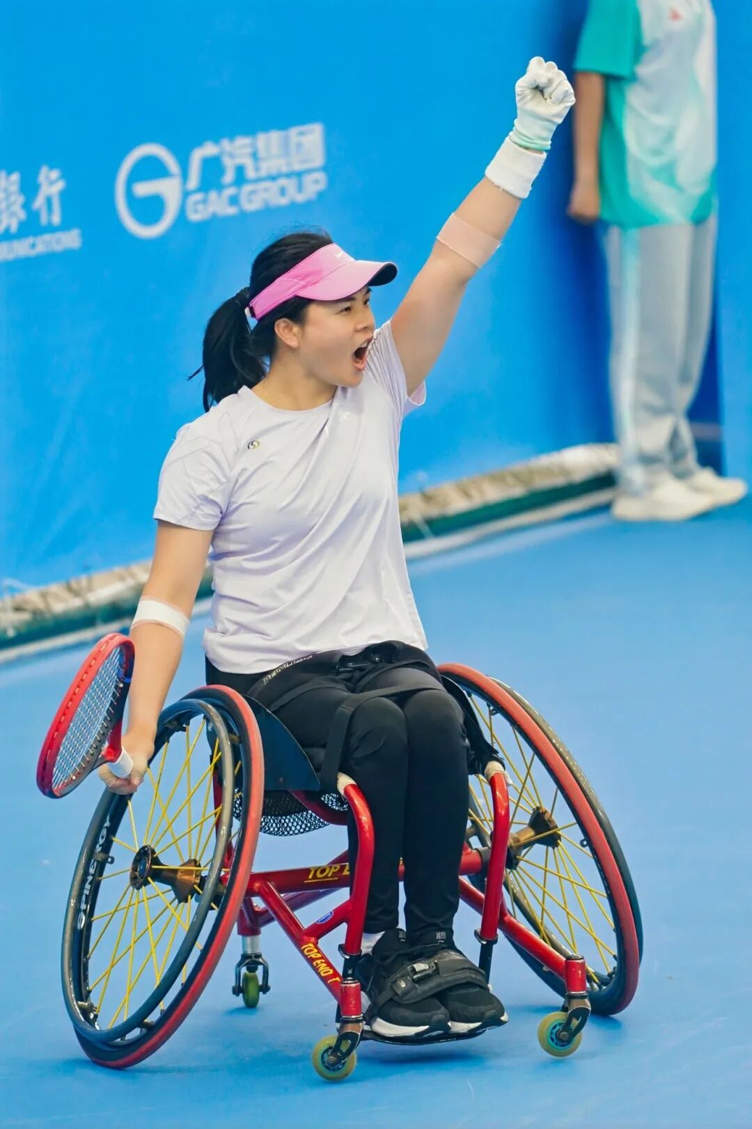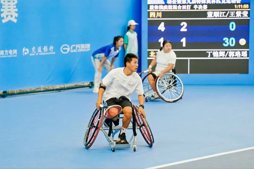 輪椅組混雙半決賽,董順江/王紫瑩2:0戰勝丁錦輝/郭珞瑤,將和另一對四川組合紀珍旭/李曉輝爭奪金牌,後者2:0擊敗了馮小敏/朱珍珍。這樣一來,王紫瑩一天內先後打進了女單、混雙兩項決賽,繼續保有在本次比賽衝擊“四金”的希望,此前她所在的四川隊已經拿下了輪椅組女團的金牌。
